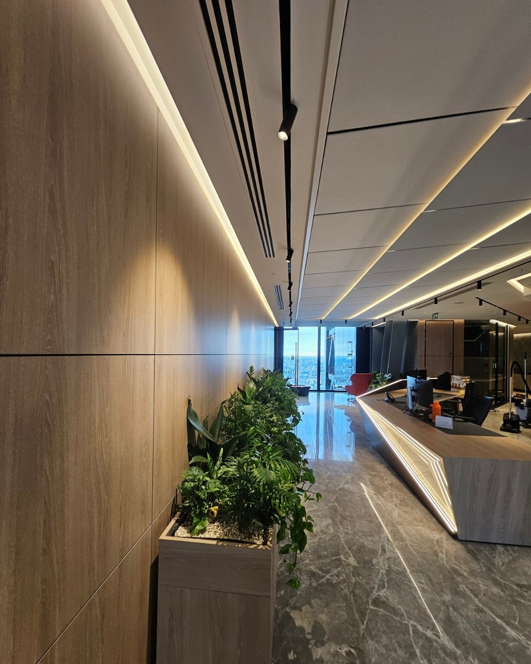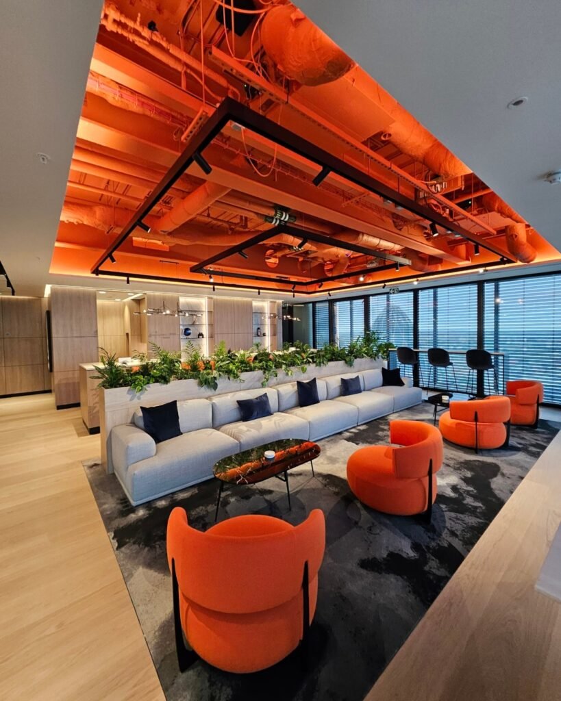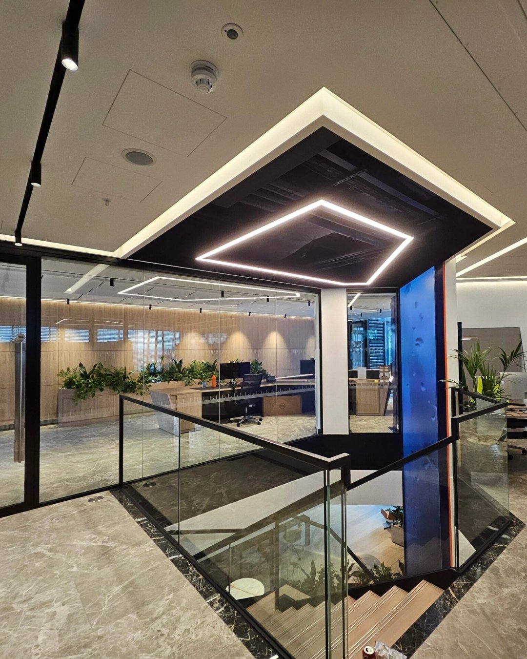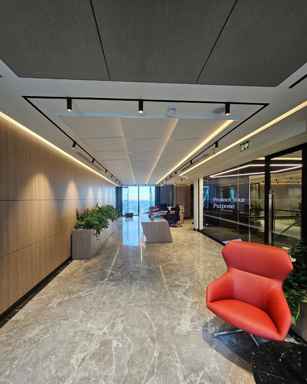 For this project we focused on lighting that supports both productivity and wellbeing, resulting in an office environment where people feel energised, alert, and comfortable throughout their working day. The design approach emphasised balance and adaptability, combining layers of light that respond to the architectural character of the building while promoting visual comfort. Carefully considered colour temperatures, contrast, and control ensure spaces remain bright and inviting without glare or fatigue. The result is a workplace that feels refined, uplifting, and intuitively connected to the rhythm of the day, reflecting a modern understanding of how light shapes both atmosphere and performance.